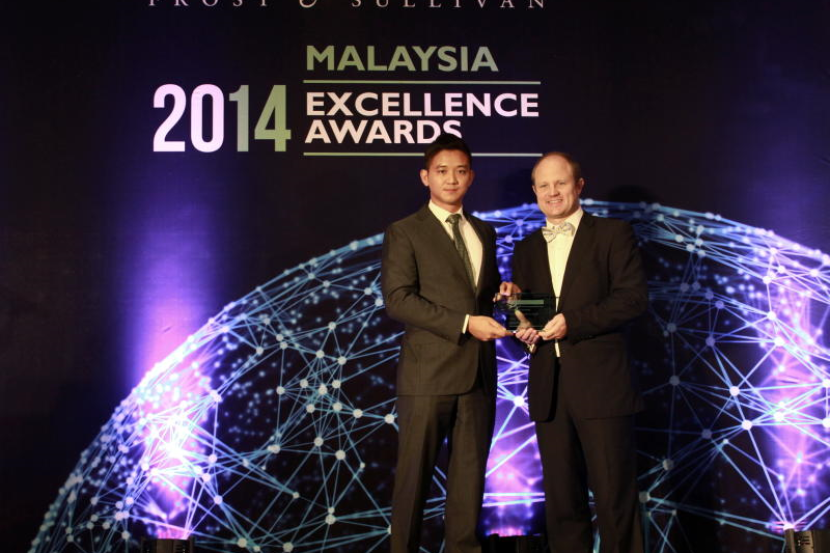 Beh (kiri) menerima anugerah daripada Pengarah Global (Growth Implementation Solutions) Frost & Sullivan, Mark Simoncelli baru-baru ini.