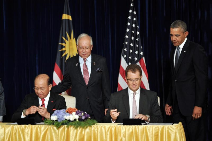 KUALA LUMPUR: Perdana Menteri, Datuk Seri Najib Tun Razak dan Presiden Amerika Syarikat (AS), Barack Obama menyaksikan majlis menandatangani perjanjian antara firma Malaysia dan AS bernilai kira-kira RM6.5 bilion (AS$2 bilion) dalam sektor penerbangan, bioteknologi dan insurans.