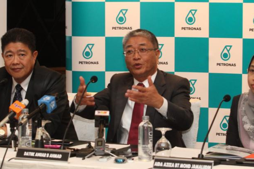 Yusa (tengah) bersama Anuar (kiri) and Pengurus Besar Petronas Gas, Aida Aziza Mohd Jamaludin pada sidang media, Isnin.