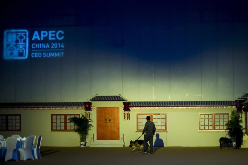 Pasukan keselamatan China memerikasa sekitar kawasan persidangan untuk memastikan APEC 2014 berjalan lancar.