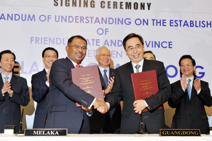 Pada 21 September lepas, Melaka dan Guangdong memeterai memorandum persefahaman bagi pewujudan Negeri dan Wilayah Persahabatan bagi terus memperkukuh hubungan persahabatan serta kerjasama kedua-dua pihak.