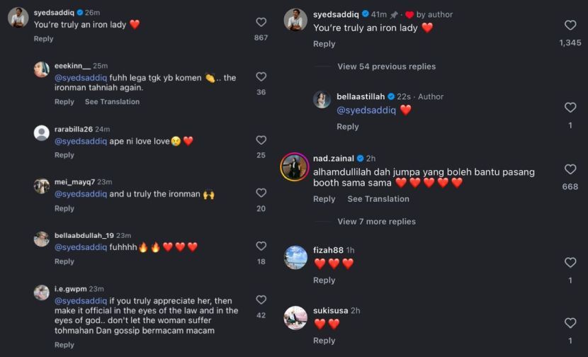 Lebih mengujakan, Syed Saddiq turut meninggalkan komen memuji kehebatan Bella disertai emoji berbentuk hati.