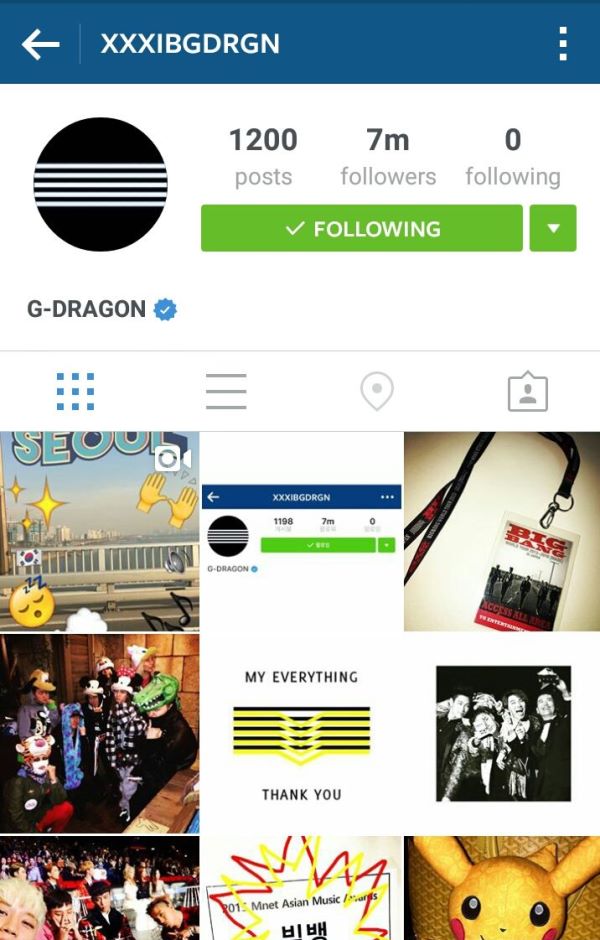 Sehingga kini, G-Dragon sudah mencapai 7 juta pengikut di Instagram dan angka tersebut masih lagi meningkat setiap hari.
