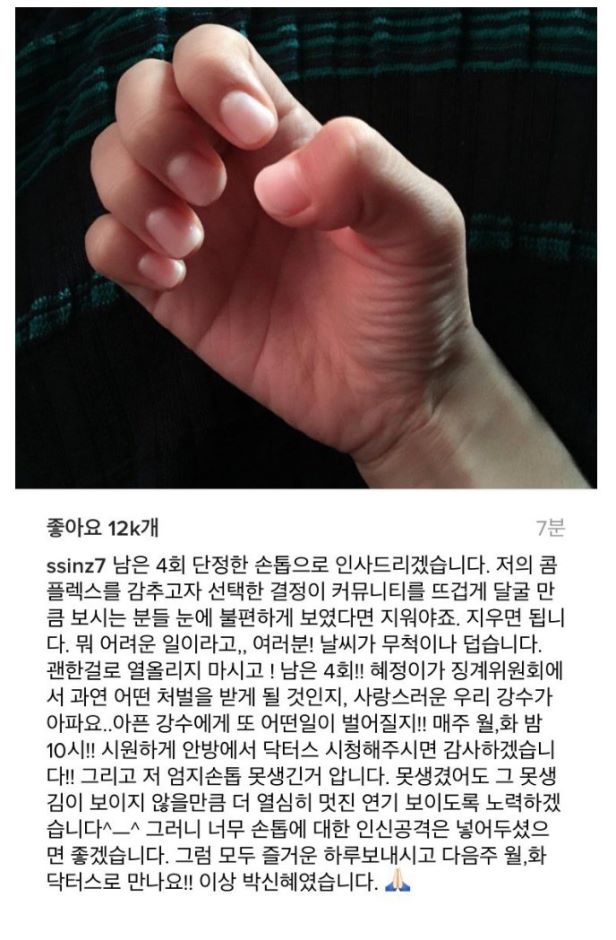 Dia secara peribadi memuat naik gambar kuku yang sudah dipotong dan dibersihkan serta permohonan maaf.
