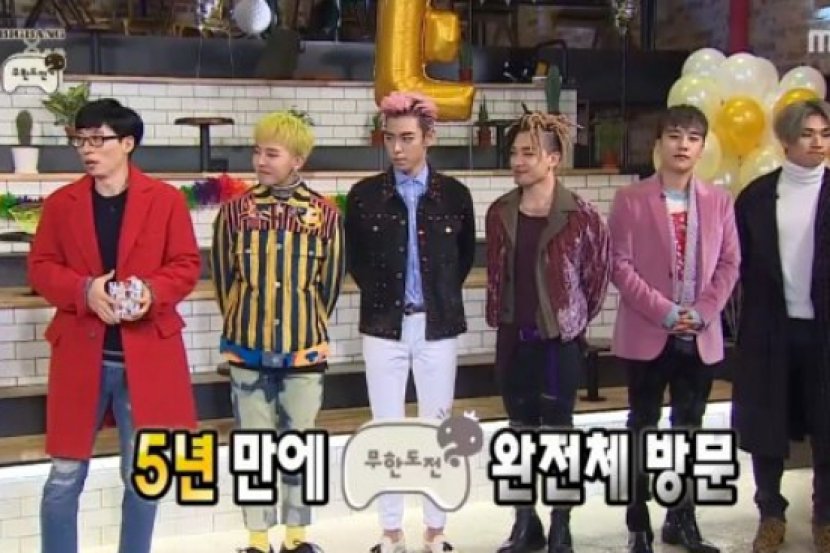 RATING program realiti Infinity Challenge naik mendadak sebanyak 12.9 peratus selepas menjemput kumpulan popular Big Bang sebagai artis undangan mereka.