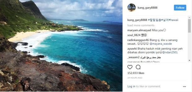 Gary memuat naik foto pertama yang berlatarkan pantai yang cantik di Hawaii.