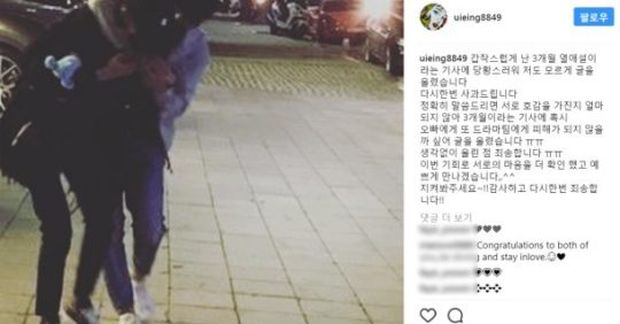 Namun selepas itu, portal hiburan Dispatch mendedahkan foto mesra mereka berdua di hadapan rumah Uee.