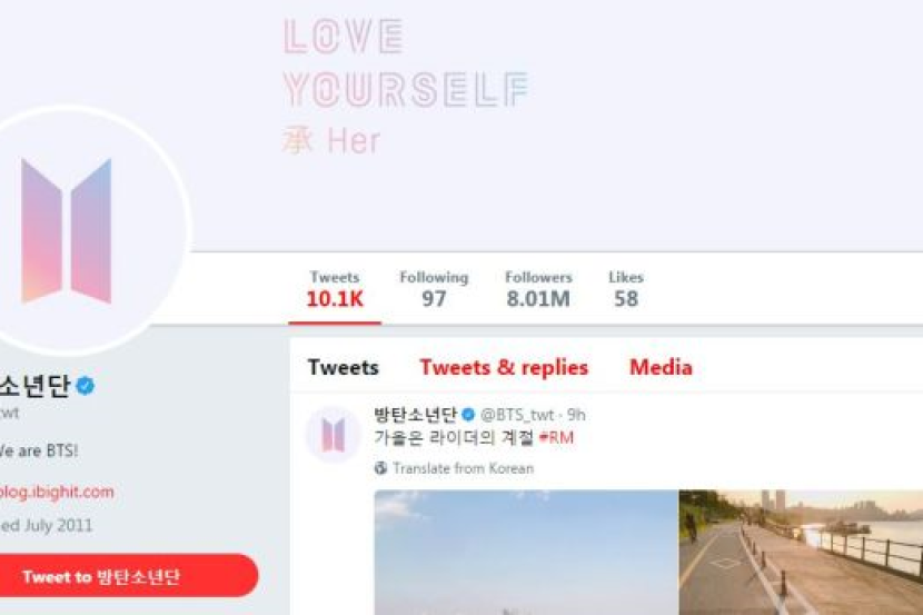 Menurut laman portal All Kpop, pengikut akaun Twitter kumpulan mereka meningkat dengan begitu pantas kerana BTS konsisten dalam berkongsi maklumat dan foto aktiviti harian.