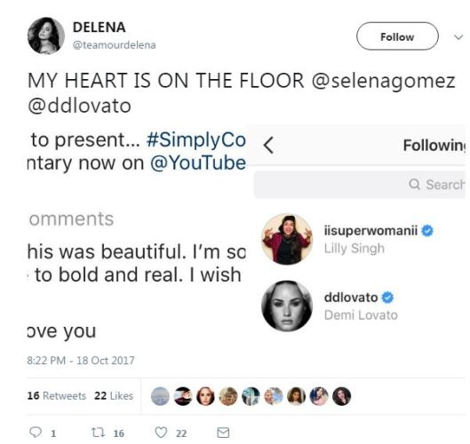 Sewaktu Demi melancarkan dokumentari terbaharunya yang bertajuk Simply Complicated pada 17 Oktober lalu, Selena tampil memberi sokongan buat penyanyi itu.