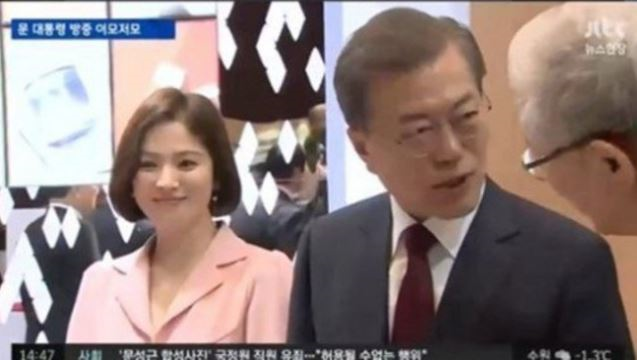 "Saya ingin ucapkan terima kasih atas undangan ini. Rasa seperti benar-benar dihargai kerana dapat bertemu Presiden Moon di sebuah program luar biasa begini," kata Song Hye Kyo kepada portal Allkpop.