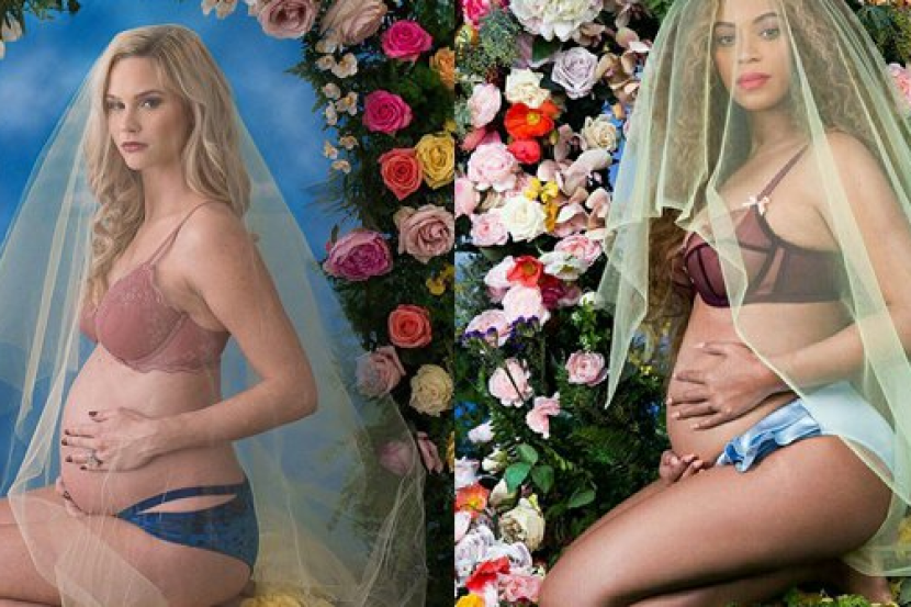 Menerusi akaun Instagram miliknya @meghankedmonds, dia memuat naik foto seakan-akan Beyonce ketika merakam kehamilan anak kembarnya.