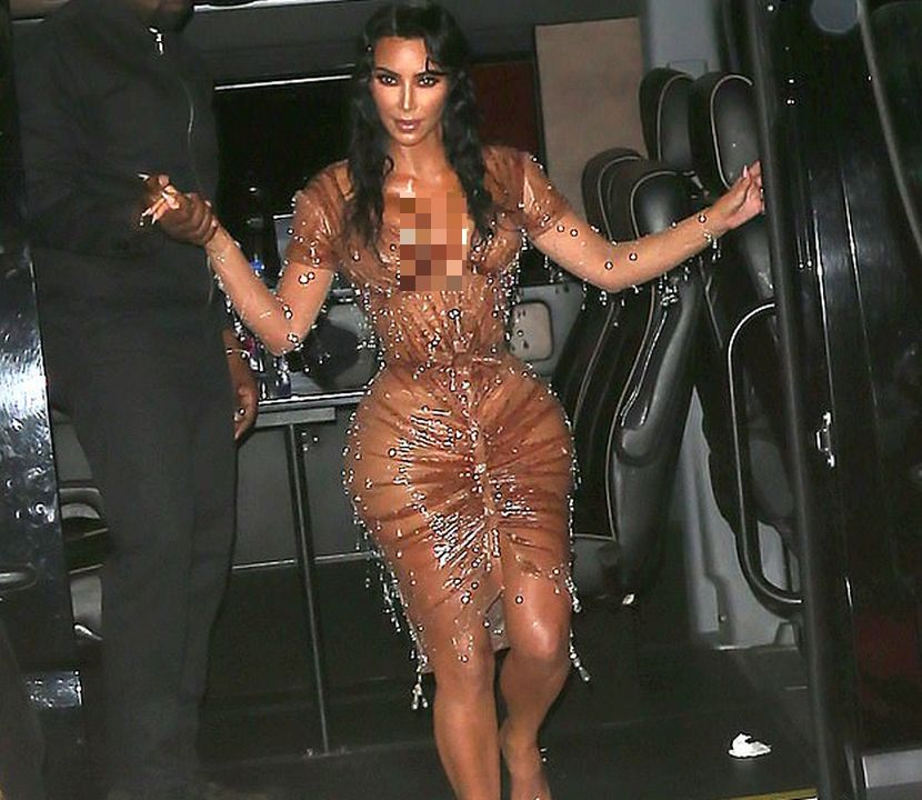 Ia gara-gara gaun getah rekaan Thierry Mugler yang memperlihatkan pinggang Kim seperti 'kerengga' kerana terlalu kecil.