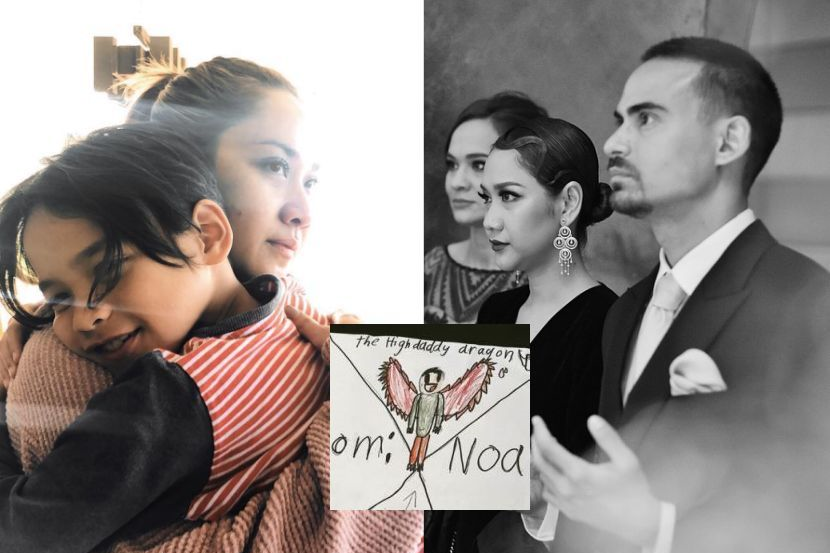 Foto yang dimuat naik pada Ogos tahun lalu itu merupakan hasil lukisan Noah yang membayangkan bapanya itu terbang tinggi bersama sepasang sayap.
