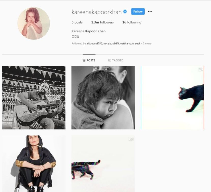 Menggunakan nama akaun @kareenakapoorkhan, ia telah memiliki lebih satu juta pengikut setelah tiga hari diwujudkan.