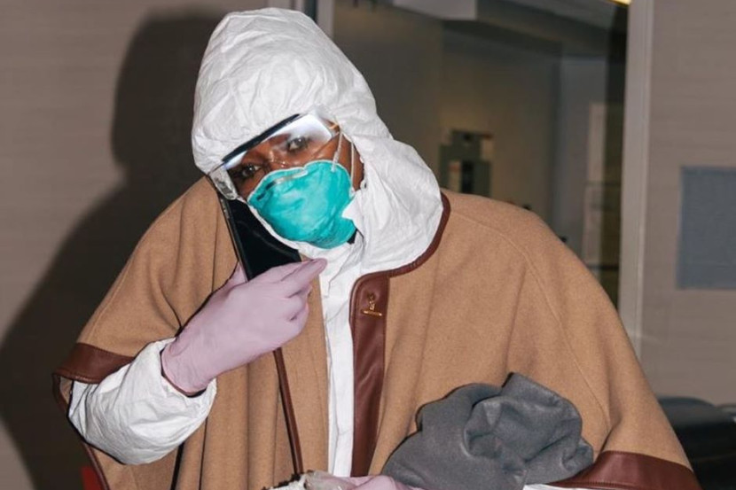 Dia memuat naik beberapa keping gambar memakai pakaian hazmat suit, topeng muka, kaca mata keselamatan dan sarung tangan getah bagi mencegah terkena wabak itu.