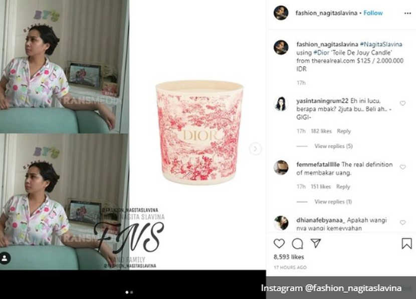 Salah satu akaun peminat di Instagram mendedahkan harga lilin aromaterapi di bilik Nagita.