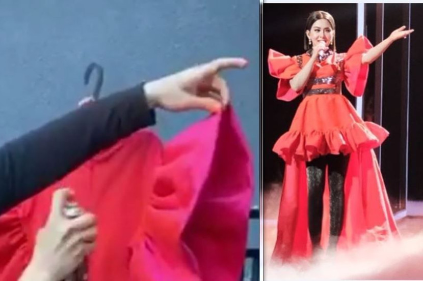 "Jadi awalnya baju oren yang Incess (Syahrini) pakai ini warna merah jambu, sudah cantik dan sempurna.