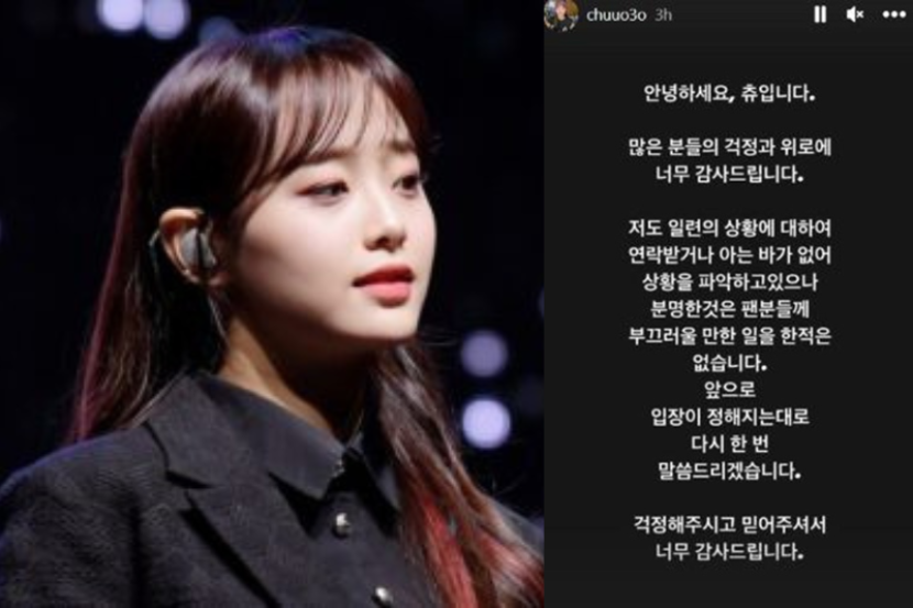 Chuu menjelaskan perkara tersebut menerusi instastory akaun Instagram miliknya dan berharap semua spekulasi yang timbul dalam kalangan peminat sudah terjawab.