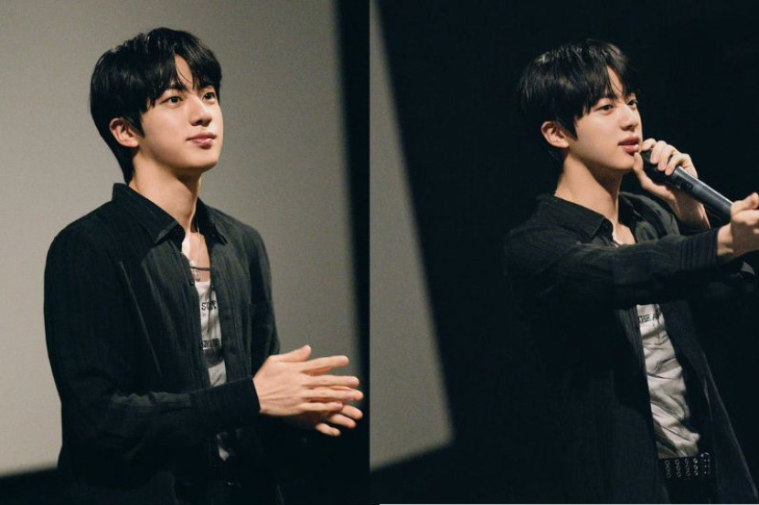Jin melayani peminat yang hadir ke acara pelancaran album solo keduanya.