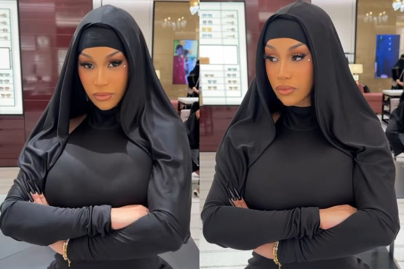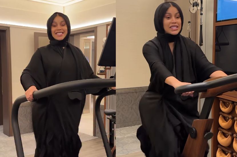 Tidak hanya itu, Cardi B juga berkongsi video yang memaparkan dirinya lengkap memakai jubah dan hijab sambil berlari di atas alat senaman treadmill.