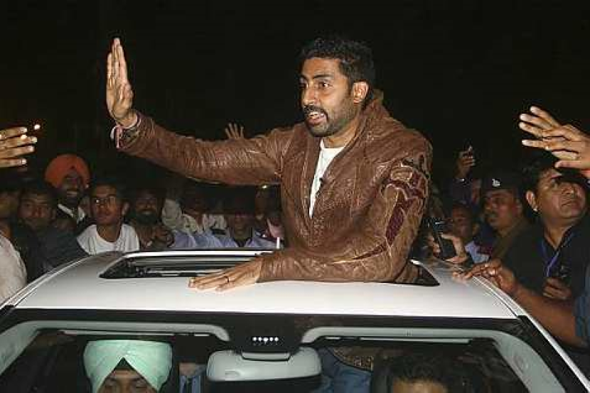 Ratusan peminat Abishek Bachchan bersorak ria dan mengerumuni Abhishek ketika dia memasuki sebuah pasaraya di Ghaziabad, Uttar Pradesh.
