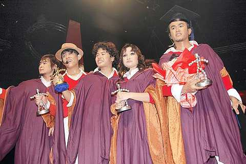 Lima finalis AF7 selepas tamat graduasi di Stadium Putra, Bukit Jalil pada Sabtu lalu. -foto The Star oleh MOHD. FAIHANPROGRAM realiti popular, Akademi Fantasia (AF) dijangka akan meneruskan legasinya ke musim ke-8 selepas peratus undian menunjukkan peningkatan 45 peratus berbanding musim lalu.Keputusan itu disahkan oleh Pengarah Eksekutif Astro Entertainment Sdn. Bhd., Zainir Aminullah sejurus selepas berakhirnya Konsert Akhir AF7 di Stadium Putra, Bukit Jalil pada Sabtu lalu. “Sebanyak 45 peratus undian yang meningkat daripada musim yang lalu. Undian itu termasuk undian AF masuk.“Namun, ia tidak setinggi undian yang dikutip semasa Konsert Akhir AF2. Kita melihat trend peningkatan ini bermula dari AF3, AF4, AF5 dan AF6,” katanya.Tambah Zainir, fenomena ini merupakan suatu perkara yang dibangga sekaligus membantu dari segi promosi.“Peningkatan ini juga seolah-olah memberi petunjuk yang kuat untuk kami membuat AF8,” ulasnya.Ketika menyaksikan Konsert Akhir AF7 baru-baru ini, penulis merasakan persembahan peserta nampak hambar sekaligus membuatkan ia kelihatan membosankan akibat pemilihan lagu yang salah oleh tenaga produksi.Jelas Pengurus Saluran Astro Ria, Khairul Mizan Shagul, semua lagu yang diberikan kepada pelajar merupakan tugasan dan cabaran yang perlu dipikul.“Kami melihat setiap pelajar mempunyai genre mereka tersendiri. Kita berikan lagu agar mereka jadikan seperti nyanyian mereka sendiri.“Ia terpulang kepada mereka. Saya lihat ada yang berjaya dan tidak berjaya melaksanakan tugasan mereka dengan baik.“Mereka gayakan dengan lebih elok dan mendapatkan ilham yang lebih sesuai dengan mereka.“Ini merupakan satu cubaan dan cabaran untuk membezakan antara juara dengan finalis lain,” katanya.Khairul Mizan turut berkata, semua lagu sedia ada yang dinyanyikan oleh peserta dipilih mengikut lagu yang mendapat tempat di hati pendengar-pendengar.“Kami memilih lagu-lagu yang sedia ada ini berdasarkan senarai lagu-lagu hits tempatan oleh Era FM.“Itu merupakan cabaran untuk mereka menunjukkan apakah perbezaan yang ditonjolkan dalam persembahan masing-masing,” ujarnya.AF7 kali ini menekankan tagline 'satu transformasi akan berlaku' yang sentiasa menjadi sebutan ramai sehingga ada yang tertanya-tanya apakah transformasi yang ditonjolkan sehingga ke konsert terakhir ini.Menurut Zainir, menurutnya, AF masih relevan dan objektif untuk mencapai transformasi itu telah tercapai.“AF7 masih mengikut tema transformasi yang ditekankan oleh tenaga produksi,” beritahu Zainir.Dalam pada itu, Pengetua AF7, Datin Seri Tiara Jacquelina mengakui antara lima orang finalis yang berjaya ke peringkat akhir konsert itu yang menunjukkan transformasi paling besar adalah Akim atau nama sebenarnya Afiq Hakim Ahmad, 18.“Dari ‘underdog’ hingga berjaya ke peringkat final dan paling hebat adalah Akim. Dia paling banyak belajar dari satu minggu ke satu minggu.“Isma pula berubah daripada seorang wanita yang nampak sebagai isteri orang tetapi kini menjadi agak ‘hot’.“Yazid pula bertukar daripada gemuruh dan gagap boleh ‘pukul’ AC Mizal ketika dalam konsert.“Aril dan Hafiz pula sudah nampak potensi mereka dan banyak berubah dari tahap ‘good’ kepada ‘great’,” tutur Tiara yang dikenali sebagai Prinsipal TJ dikalangan para pelajarnya.Walaupun dinobatkan sebagai peserta yang mengalami banyak transformasi, Akim hanya berjaya menempatkan dirinya di tempat ke-3.Hafiz berjaya melayakkan dirinya menyandang gelaran juara, diikuti dengan Aril sebagai naib juara, Yazid di tempat ke-4 manakala Isma berada di tempat ke-5.Semua peserta berjaya membawa pulang hadiah masing-masing termasuk wang tunai dan trofi sumbangan Astro melainkan Isma yang hanya mendapat trofi semata-mata.Adakah ia adil kepada Isma atau nama sebenarnya Ismaliza Ismail, 30, untuk pulang dengan tangan kosong tanpa hadiah wang tunai?“Hadiah wang tunai cuma hadiah saguhati. Peluang untuk meraih wang tunai lebih banyak pada masa akan datang.“Bagi saya, wang tunai tidak menjadi sebab utama mereka memasuki pertandingan ini dan tiada masalah kepada diri masing-masing,” kata Zainir.Menjawab persoalan itu dan berusaha memberi penerangan kepada hal itu, Isma mengiyakan apa yang diperkatakan oleh Zainir.“Wang tunai tidak menjadi ukuran. AF merupakan suatu platform yang dirasakan cukup bangga walaupun saya mendapat tempat ke-5. Saya akan berusaha keras selepas ini,” janji Isma.Sebelum mengakhiri sidang media tersebut, Khairul Mizan sempat meuar-uarkan tentang program ‘Menuju Puncak’ iaitu program realiti yang menceritakan tentang perjalanan Hafiz sebagai juara AF7 yang bakal muncul di kaca TV dalam masa dua minggu lagi.