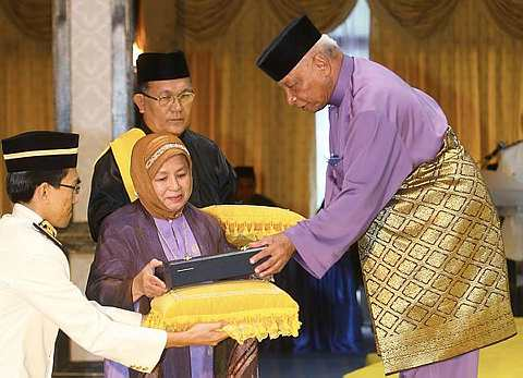 Anugerah yang disampaikan oleh Sultan Ahmad Shah dalam satu istiadat di Balairong Seri Istana Abu Bakar di sini diterima oleh kakak sulung penyanyi itu, Datin Rodziah Arshad.