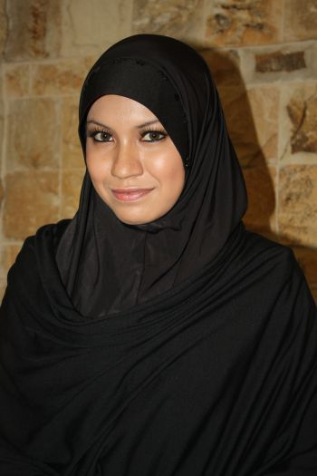 “Saya dah biasa bertudung, bukan sahaja untuk lakonan tetapi untuk sesi fotografi dalam bidang peragaan,” katanya yang manis mengenakan tudung bagi menjayakan watak Ungku Intan Anis dalam teater ‘Intan Yang Tercanai’.