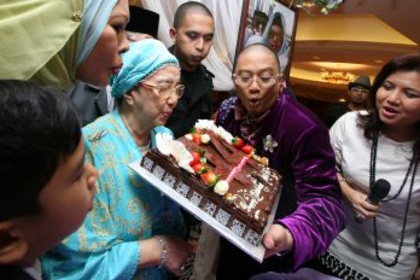 Mak Tom meniup lilin kek ulang tahun ke-44 Azwan yang disambut awal sebulan. -Foto ihsan RADHIFF TALHA