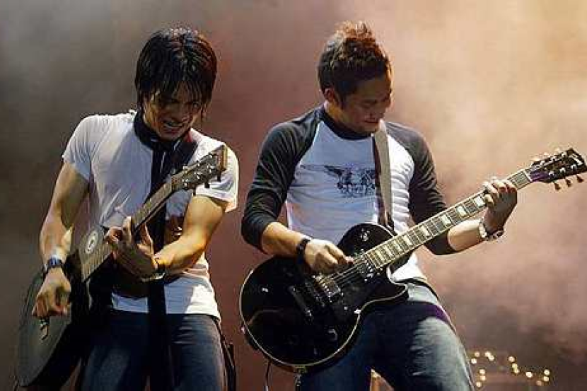 Konsert Peterpan Live di Stadium Merdeka pada 2006. Ariel (kiri) dan Uki memetik gitar sambil memberikan persembahan bertenaga. - Foto THE STAR Oleh AZHAR MAHFOF