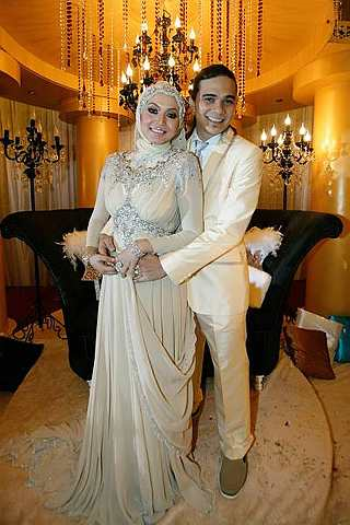 Persandingan Bienda dan Boy bertemakan Arab dan Bollywood di Ideal Convention Centre, Selayang, Jumaat. - Foto Utusan PETALING JAYA: Penyanyi Bienda atau nama sebenarnya Nor Razlinda Razli, 25, masih ingin berahsia mengenai tarikh pernikahan dia dan suaminya iaitu produser program di Primeworks Studios, Kamarul Zariman Abd Rahman.Beritahu Bienda, dia merahsiakan tarikh pernikahan dan lokasi majlis akad nikah kerana memenuhi permintaan keluarga memandangkan majlis itu dibuat secara tertutup. "Maaf kerana terpaksa merahsiakan pernikahan kami. Ini adalah untuk menjaga hati keluarga bagi kedua-dua belah pihak."Saya juga mempunyai alasan tersendiri untuk merahsiakannya daripada pihak media dan peminat. Saya mahu sedikit ruangan privasi pada majlis bersejarah itu."Lagipun, saya bukannya berkahwin dengan suami orang, sebaliknya saya berkahwin dengan orang bujang," katanya selepas majlis persandingan mereka yang bertemakan Arab dan Bollywood di Ideal Convention Centre, Selayang, Jumaat.Bagaimanapun, Bienda mahu berkongsi maklumat lain mengenai majlis pernikahannya di mana Kamarul atau dipaggil Boy sah bergelar suami kepada Bienda selepas dua kali lafaz dengan mas kahwin RM80.Bienda turut menerima wang hantaran sejumlah RM11,111.11 daripada pihak lelaki.Pada majlis pernikahan itu, pihak lelaki menyerahkan tujuh dulang hantaran dan dibalas sembilan oleh pihak perempuan."Setelah berkawan dengan Boy lebih dari tiga tahun, saya bersyukur dan gembira kerana sudah lama saya menantikan detik indah bergelar isteri," ujarnya.Bienda dan Boy yang bagaikan seperti merpati dua sejoli pada majlis persandingan itu berkata, mereka merancang untuk berbulan madu ke negara Eropah pada awal tahun depan dan bersedia untuk memiliki anak pada bila-bila masa.Bertanyakan mengenai perkenalan Bienda dan Boy, mereka bertemu di satu lokasi penggambaran drama yang mana Boy merupakan krew produksi untuk Skop Production ketika itu."Boy dengan selambanya nak minta nombor telefon saya kononnya mahu berbincang mengenai produk penjagaan mata."Selepas dua minggu berkenalan, pada 15 April 2007, Boy melamar saya terus untuk dijadikan isteri dan bukannya kekasih."Nak ikutkan memang kami mahu kahwin secepat mungkin. Tapi bila terdapatnya beberapa perkara yang harus ditempuh, akhirnya barulah kami dapat tunaikan hajat kami ini," ujarnya.