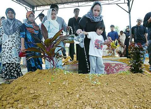 SUBANG JAYA: Jenazah penyanyi Shamrin dari kumpulan Fotograf telah selamat dikebumikan di Tanah Perkuburan Islam SS22, USJ, di sini, kira-kira pukul 2.30 petang, Jumaat.Shamrin atau nama sebenarnya Mohd Shamrin Abdul Samad, 45, disahkan meninggal dunia akibat sakit jantung pada petang Khamis ketika menyertai perlawanan bola sepak persahabatan dengan sebuah syarikat insurans di Kelab Sultan Sulaiman, Kuala Lumpur. Kira-kira 100 orang yang hadir memberikan penghormatan buat kali terakhir kepada jenazah yang dimandikan dan disolatkan di Masjid Al-Falah, USJ 9, di sini, pada pukul 10 pagi, Jumaat.Antara yang hadir termasuklah balu Shamrin, Jazriatul Akma Abu Saman,29, bersama dua anak, Akmal Danish,5 dan Akmal Shamim, 18 bulan, bekas isteri pertama Shamrin, Noreda Mohd Razali, 45, dan anak hasil perkongsian perkahwinan dengan Shamrin, Siti Najwa, 17.Sementara rakan artis yang turut serta adalah penyanyi Nash (Lefthanded), Lah Ahmad Nasser Wahab, Aris Ariwatan, Zura (The Girls), Hairi (Kool), Ali (Mpire), Zamani (Slam), pelakon Accapan, Abon dan bekas pemain bass Fotograf, Amran Abu Sidek.Apa kata rakan-rakan artis:Hairi (Kool)“Semasa Shamrin meninggal dunia, saya dan beberapa rakan artis lain berada bersamanya. Sejak tumpang tidur di rumah Riot semalam, dia sudah nampak letih dan tak cukup tidur.“Riot ada bercerita kepada saya, semasa Allahyarham di rumahnya semalam, Riot menyuruhnya berehat terlebih dahulu kerana dia Allahyarham kelihatan letih.“Namun Allahyarham menjawab tak boleh tidur, bahaya, nanti tidur terus.”Amran Abu Sidek (bekas pemain bass Fotograf)“Minggu lepas, saya ada berborak dengan dia, merancang untuk menegakkan hak band tempatan yang dipinggirkan sebaliknya penulis lirik dan komposer yang diberi keutamaan setelah album kompilasi kumpulan rock dihasilkan.“Kami mahu lakukan bukan sebab duit semata-mata tetapi mahu tegakkan hak anggota band seperti kami. Selepas dia tiada, saya rasa tidak akan teruskan perancangan ini sebab dah tak larat.“Mengenali Allahyarham, dia merupakan seorang yang sangat berbakat dan sudah dilahirkan untuk bergelar penyanyi. Saya berani katakan yang dia merupakan penyanyi paling terbaik dalam industri hiburan ini.”Opie (Bloodshed)“Saya rapat dengan dia sejak kami sekolah sama-sama. Saya pernah menerbitkan album Fotograf berjudul Fokus dan Juara Mimpi.“Minggu lepas, saya mengajak Allahyarham pergi buat show di Melaka dan dia beria-ia untuk menyanyi. Jadi, saya rasa terkejut kerana sepanjang mengenalinya, dia tidak pernah sakit dan aktif bermain bola sepak.”Shamsul Bahrin (bekas pengurus Fotograf)“Sebagai kawan, Allahyarham sangat prihatin dengan Ringgo (Fotograf) yang kini berada di Venezuela. Dia sanggup menunggu Ringgo pulang ke Malaysia untuk menerbitkan album terbaru tetapi nampaknya niat itu tidak kesampaikan.”