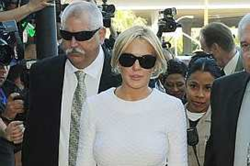 Mengenakan gaun ketat putih pendek dengan kaca mata hitam, bintang berusia 24 tahun tersebut tidak berkata apa-apa semasa tiba 20 minit lebih awal di mahkamah berhampiran lapangan terbang Los Angeles. Keadaan itu menyebabkan pihak media berkerumun untuk mengikuti kesnya.