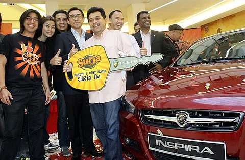 Muhammad Azim bergambar kenangan bersama penyampai Suria FM dan bersama kereta Proton Inspira dimenanginya. - Foto THE STAR Oleh ELLIS KHANPETALING JAYA: Seorang peguam, Muhammad Azim Salim, 37, pada Khamis berjaya membawa pulang sebuah kereta Proton Inspira pada acara finale peraduan 'Kuiz Kereta dan Duit Raya' yang dianjurkan oleh stesen radio popular, Suria FM.Muhammad Azim berjaya meneka dengan tepat lokasi 'Kerinting Three' daripada segmen Breaksfast@Suria yang melarikan Proton Inspira tersebut pada 20 September lalu. Pendengar yang berjaya meneka di manakah lokasi 'Kerinting Three' iaitu gandingan Halim Othman, Zizi dan Sharifah Shahira berada berjaya memiliki 'kunci' bertuah dan seterusnya berpeluang memenangi sebuah kereta sebagai hadiah utama.Dia ketika ditemui berkata tidak menyangka panggilan yang dibuatnya ke studio Suria FM sewaktu dalam perjalanan ke pejabat telah membawa tuah kerana selama ini dia tidak pernah menyertai sebarang pertandingan."Ini adalah kali pertama saya menyertai pertandingan sebegini dan tidak menyangka akan memenangi sebuah kereta. Saya bersyukur dengan kemenangan ini dan berterima kasih kepada pihak Suria FM," ujarnya.Selain hadiah utama kesemua 50 peserta akhir pertandingan itu turut menerima duit raya berjumlah RM50 setiap seorang.Dalam pada itu, pada majlis sama, Pengurus Operasi Suria FM, Azrullah Mohd Nor turut menyampaikan cek berjumlah RM10,600 kepada Intan Senin yang berasal dari Sungai Udang, Melaka selepas berjaya meneka dengan tepat lagu dalam segmen 'Itu Aje'.Intan berjaya meneka lagu yang dicari oleh pihak Suria FM daripada nyanyian kumpulan Spoon berjudul 'Rindu Serindu-Rindunya' selepas hampir lima bulan mencari pemenang."Saya mengikuti kuiz ini sudah lama semenjak tahun lepas lagi dan tidak sangka tahun ini menjadi rezeki saya," katanya.Intan memberitahu dia melekatkan sekeping kertas kajang di dinding ruang tamu rumahnya dan mencatatkan setiap lagu yang diteka salah oleh pendengar bagi memudahkannya untuk mencari klu sebenar," katanya.Sementara itu, Azrullah berkata, pihaknya gembira dengan sambutan yang diterima terhadap dua pertandingan itu dan akan meneruskan dengan beberapa pertandingan lain pada masa hadapan.Katanya kemuncak kemenangan Muhammad Azim tidak terhenti di situ kerana Suria FM akan mengakhiri sambutan Hari Raya Aidilfitri pada tahun ini dengan sebuah Konsert Kemuncak Raya Suria FM pada Sabtu ini.Antara Artis yang bakal menjayakan persembahan pada konsert tersebut ialah Datuk Siti Nurhaliza, Datuk M. Nasir, Amy Search, Hattan, Ning Baizura, Hujan, Nurul Wahab, Mawi, Awi Rafael dan Adira.