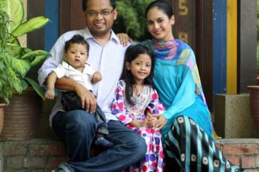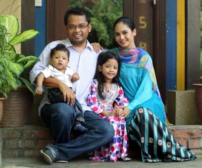 Anita Baharom bersama suami Mohd Ismadi Ismail dan dua anaknya Syifa Dhia Nurina, 5, dan Mohamad Dhia Iskandar, 7 bulan.