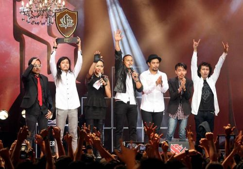 Kumpulan Hujan dinobatkan selaku juara Versus. - Foto oleh SAMUEL ONGSHAH ALAM: Dengan undian sebanyak 50.6 peratus, kumpulan Hujan berjaya merebut gelaran juara pertandingan Versus, yang diadakan secara langsung di Space U8, Shah Alam, malam Jumaat.Hujan telah mengalahkan kumpulan Go Gerila yang mendapat undian sebanyak. 49.6 peratus sekaligus menerima wang tunai sebanyak RM200,000. "Alhamdulillah, kemenangan ini hasil daripada usaha kami yang tidak henti-henti sejak menyertai Versus dari minggu pertama."Memang kami nak menang sebenarnya, tapi tak sangka memang ia benar-benar jadi realiti kerana sebelum ini markah undian daripada penonton tak tinggi berbanding kumpulan-kumpulan lain," kata vokalis Hujan, Noh, pada sidang akhbar selepas konsert berlangsung.Pada konsert tersebut, terdapat dua segmen iaitu 'medley Mash-Up' dan persembahan lagu baru.Bagi medley 'Mash-Up', Hujan membawakan lagu Dan Bila Esok dan Lamunan Terhenti, Black and Parallax (Merisik Khabar dan Sekadar Di Pinggiran), Go Gerila! (Biso Bonar dan Curiga), Sofazr (Basikal dan Inilah Nasibku) dan 6ixth Sence (Warisan dan Fiona).Manakala untuk lagu baru pula Hujan membawakan lagu Ke Selatan, Black and Parallax (Aku vs Kamu), Go Gerila (Hadiah), Sofazr (Berakhir) dan 6ixth Sence (Hossi).Sistem penilaian Versus adalah berdasarkan undian Khidmat Pesanan Ringkas (SMS) dan permarkahan juri profesional.Ia membariskan penggiat muzik Jennifer Thompson selaku ketua juri, komposer Loque sebagai juri tetap dan seorang jurijemputan mingguan.Pada setiap minggu, setiap kumpulan perlu menggubah lagu lama yang diberikan mengikut tema tertentu.Dalam tempoh seminggu, para peserta perlu membuat persiapan dan mempersembahkan lagu tersebut pada konsert mingguan sebagai medan penilaian.Konsert akhir Versus telah bersiaran langsung menerusi saluran TV9 itu diacarakan oleh Aidid Marcello dan Hunny Madu.