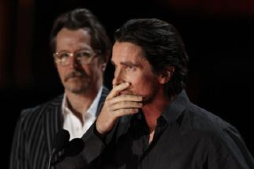 Christian Bale menahan sebak apabila klip daripada filem Batman - The Dark Knight ditayangkan semasa Anugerah MTV pada Ahad lalu.