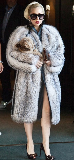 Menurut laporan Dailymail, penyanyi lagu Born This Way ini dilihat berjalan keluar dari hotel tempatnya menginap di Bulgaria pada Ahad lalu dengan mengenakan kostum bulu tebal.
