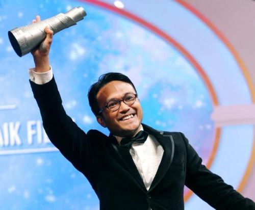 Sam ketika diumumkan sebagai Pelakon Lelaki Terbaik Filem menerusi Songlap pada malam Anugerah Skrin 2012, Jumaat lalu.