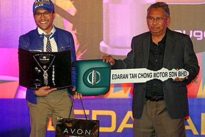 Shaheizy Sam (kiri) menerima replika kunci kereta Nissan 370Z Coupe yang dimenanginya sebagai Bintang Paling Popular ABPBH 2012 daripada Mior Kamarul Shahid. SUBANG JAYA: Bintang Paling Popular, Anugerah Bintang Popular Berita Harian 2012 (ABPBH 2012) iaitu pelakon Shaheizy Sam menghadiahkan set barang kemas tajaan Habib Jewels yang dimenangi khas buat ibunya, pelakon Khaty Fauziah.Sam, 31, berkata, dia sudah berhajat untuk memberi hadiah bernilai RM150,000 itu kepada ibunya yang menjadi penyokong utamanya sejak dia bergelar pelakon. "Beliau adalah penyokong setia dan pemangkin semangat saya. Tanpanya tidak adalah saya di sini."Jujurnya saya tidak mampu membalas jasanya yang cukup besar. Cuma hadiah kemenangan di ABPBH ini memang saya ingin berikan kepadanya," jelas Sam ketika ditemui pada majlis penyampaian hadiah kepada pemenang –pemenang ABPBH 2012 di Hotel Holiday Villa di sini, Selasa.Hadiah disampaikan oleh Pengarang Kumpulan Berita Harian (BH), Datuk Meor Mior Kamarul Shahid.Majlis turut dihadiri oleh Timbalan Pengarang BH, Mahfar Ali dan Pengarang Bersekutu Edisi Mingguan BH, Hanizam AbdullahSelain barang kemas, Sam turut menerima sebuah kereta Nissan 370Z Coupe tajaan Edaran Tan Chong Motor Sdn Bhd.Pada ABPBH 2010, Sam turut memenangi anugerah serupa sehingga melayakkan dia membawa hadiah kereta Nissan Teana 2.0L bernilai RM140,000 dan barangan kemas Rafflesia Mandalay (edisi terhad) serta beberapa hadiah iringan lain.Mengenai hadiah kereta Nissan yang dimenanginya Sam berkata, kenderaan itu akan digunakan untuk aktiviti seharian dan tidak berhasrat untuk menjual atau memberikannya kepada orang lain.Dalam pada itu, kumpulan rock popular Search yang mendapat Anugerah Sepanjang Hayat pada majlis tersebut turut menerima penghargaan daripada pihak Berita Harian.Pemenang bagi 16 kategori lain yang dipertandingkan turut memenangi pelbagai hadiah menarik daripada pihak penganjur seperti Habib Jewels dan Jamu Mak Dara.Sementara itu seorang pembaca, Norhana Nazidin menjadi individu bertuah apabila berjaya membawa pulang sebuah kereta Nissan Almera sumbangan Edaran Tan Chong Motor Sdn Bhd.Selain itu, Norhana turut membawa pulang barang kemas Habib Jewels dan tiket pelayaran 4 hari 3 malam di atas kapal SuperStar Libra tajaan Star Cruise Travel Sdn Bhd.Dalam perkembangan sama, ABPBH 2012 turut menyampaikan Anugerah Khas kepada artis yang memberikan komitmen sepanjang siri jelajah acara itu.Artis yang menerima anugerah berkenaan adalah Aaron Aziz, Didie Alias, Emma Maembong, Hanez Suraya, Johan As'ari, Shah Iskandar dan Sleeq.
