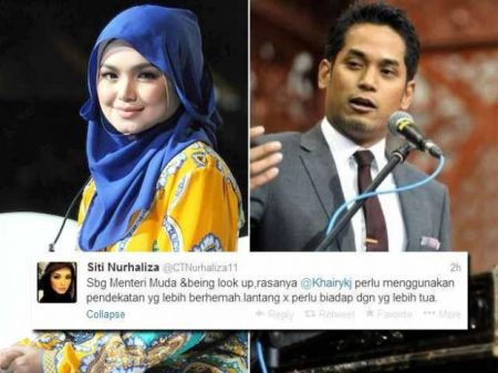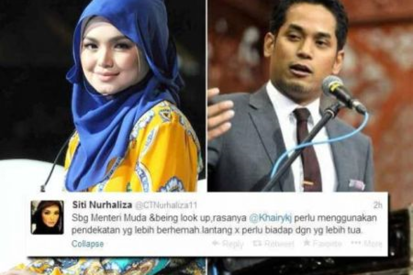 Pada Selasa lalu, Siti melalui akaun Twitter miliknya @CTNurhaliza11 telah menegur Khairy dengan menyifatkan menteri itu terlalu lantang menegur sesuatu dan perbuatan tersebut dilihatnya seolah-olah agak biadab terhadap pemimpin yang lebih veteran.
