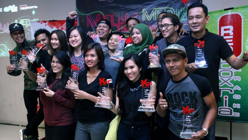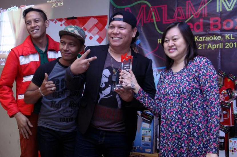 Vokalis kumpulan berkenaan, Ronnie tampil menerima trofi yang disampaikan oleh Pengarah Urusan Red Box, Valerie Choo.