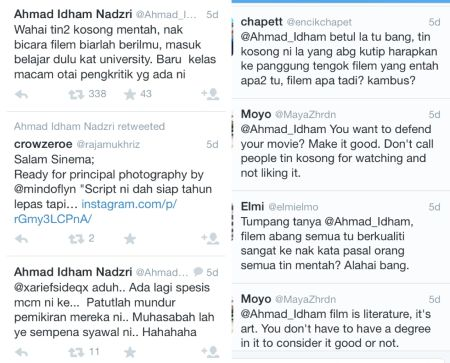 Dalam masa yang sama, Ahmad Idham telah membalas kritikan tersebut dengan melabelkan mereka sebagai 'tin kosong' kerana tidak mempunyai kelayakan untuk bercakap tentang filem.