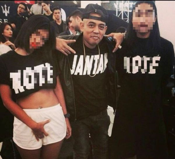 Jelas Joe, tidak lama kemudian mucul dua individu di sebelah kiri dan kanannya untuk bergambar sebelum dia menyedari kedua-dua mereka memakai baju bertulisan lucah berkaitan alat sulit lelaki.