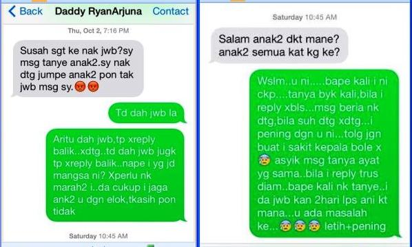 “Saya juga pernah membalas mesej-mesejnya mengenai anak tetapi saya terkejut kenapa dia masih menganggap tidak menerima sebarang balasan daripada saya,” ujar Rita.