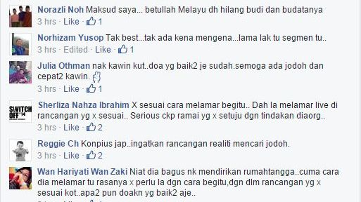 KUALA LUMPUR: Hasrat pelakon Hairul Azreen untuk memperlihatkan kepada ‘dunia’ cintanya terhadap Hanis Zalikha dengan melamarnya dalam sebuah rancangan siaran langsung mengundang padah apabila mereka dikutuk oleh peminat.
