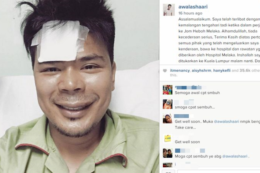 "Alhamdulillah, Awal dan rakannya yang tidak mengalami cedera parah, namun dia kini sudah dibawa ke Hospital Melaka bagi membuat imbasan x dan rawatan lanjut.