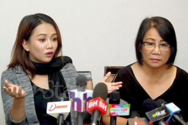 Stacy (kiri) ditemani ibunya Agnes Kaloos pada sidang media mengenai penghijrahannya ke agama Islam.