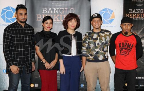 Jane (tiga dari kanan) bersama pelakon filem Banglo Berkunci.