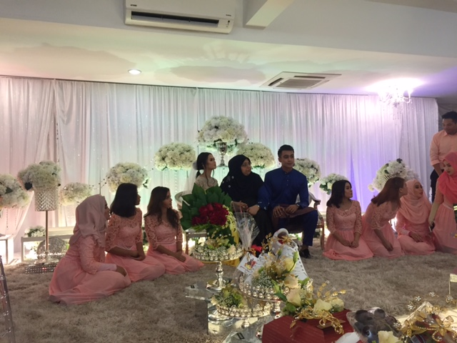 Ibu Aliff, S Hafiza Basharahil (kanan) menyarungkan cincin pertunangan ke jari Dayang Nabellah Awang Astillah.